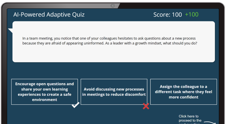Powered by our AI Learning Hub, in-SCORM AI brings knowledge mentoring, adaptive assessment, open-ended coaching, and personalized pathways inside every SCORM file.
